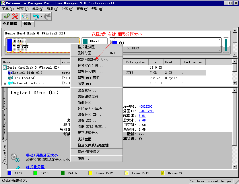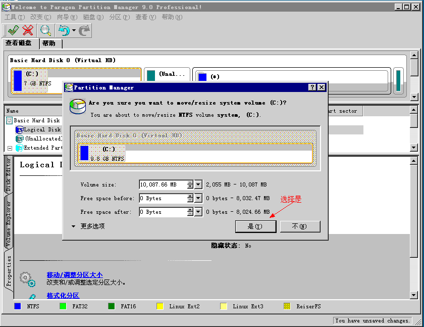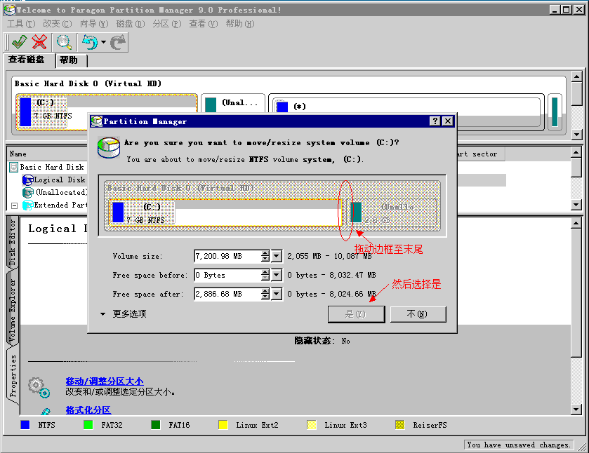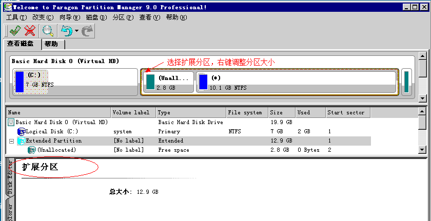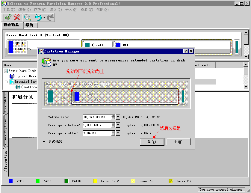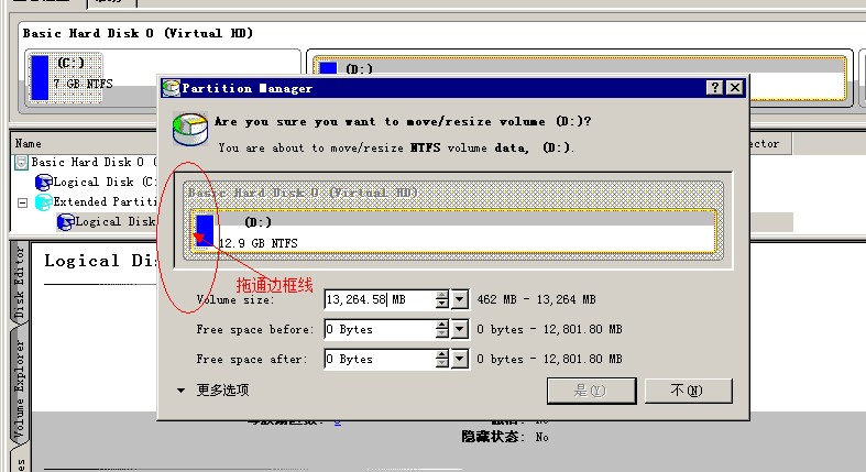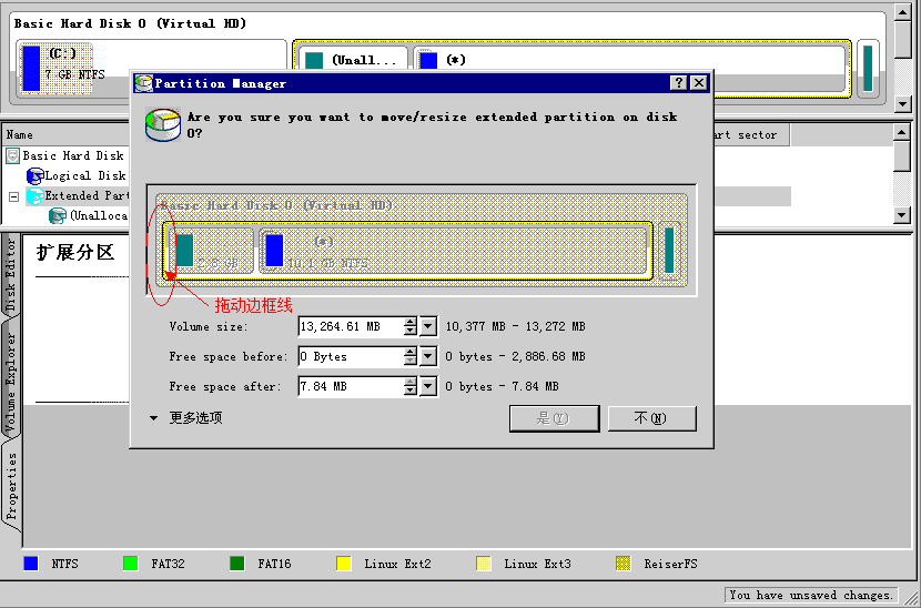 (5)把刚才分出来的大小,从扩展分区中拖出来