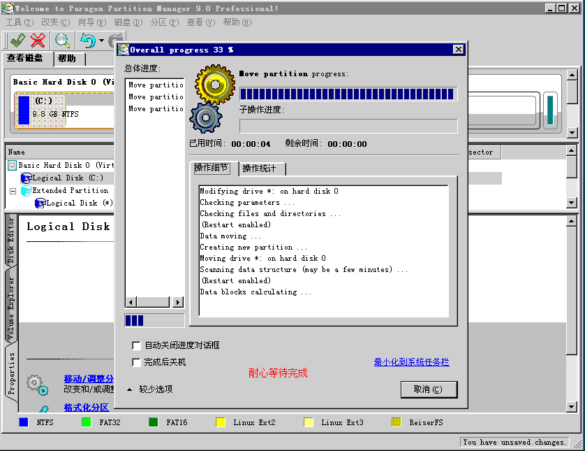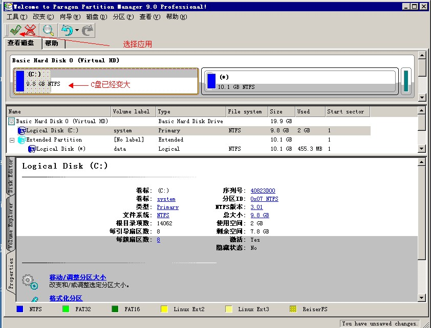(10)确认以上操作无误后,点击左上角的绿色“√”应用,在弹出的应用窗口,等待应用100%后,点击右下角的close关闭